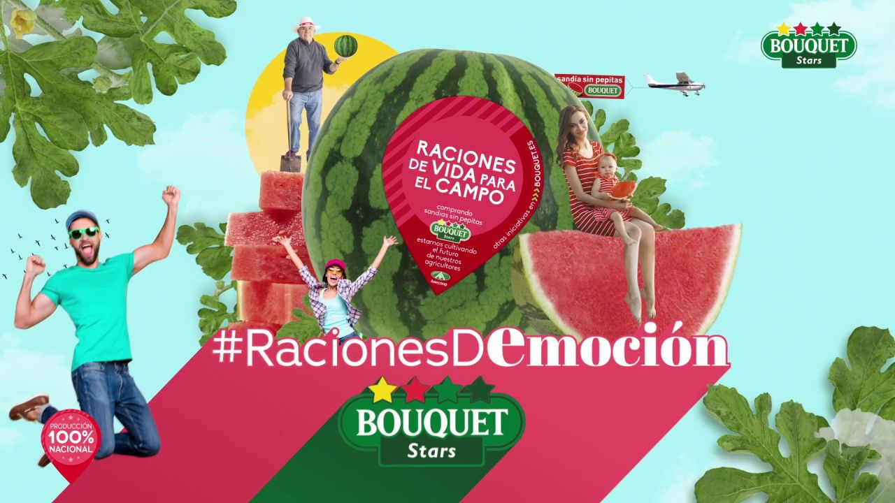 Sandías Bouquet ha lanzado su nueva campaña 'Raciones de emoción'. Un spot lleno de color y alegría, que nos devuelve a la magia del verano y a esos momentos especiales que disfrutamos con nuestros seres más queridos al aire libre. La sandía Bouquet fue la primera sandía sin pepitas del mercado europeo y, tres décadas después, sigue siendo la preferida en miles de hogares de 29 países.