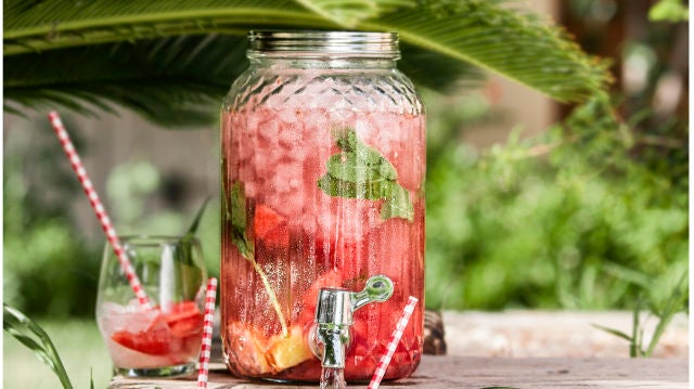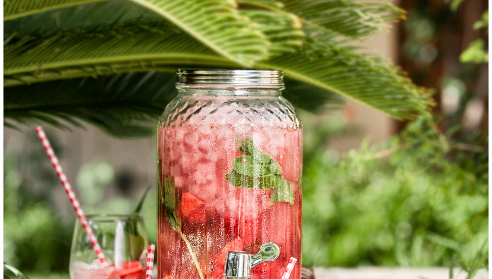 Terminamos rellenando el recipiente con agua de sandía y la mantenemos fría en la nevera para poder reponer cuando se necesite.