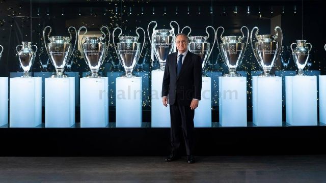 Florentino Pérez ha colocado la Decimotercera Championsen la famosa vitrina del estadio blanco. La nueva 'Orejona' del Real Madrid ya lidera a las otras 12 Copas de Europa y todos los aficionados que hagan el Tour Bernabéu podrán ver el trofeo conquista en Kiev.