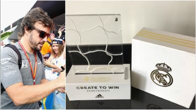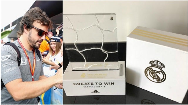 El Real Madrid obsequia a Fernando Alonso con un trozo de red del Millennium Stadium de Cardiff
