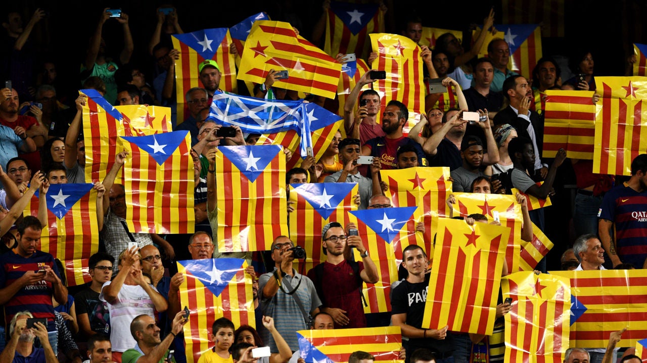 Varias asociaciones independentistas repartieron hasta 30.000 esteladas en los exteriores del Camp Nou y, una vez que el himno de la Champions sonó en el estadio culé, la afición mostró su rechazo a la UEFA con una sonora pitada. Buena parte de la afición mostró sus esteladas y también hubo gritos de "¡Independencia, independencia!".