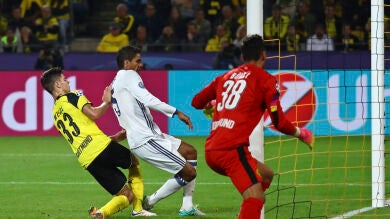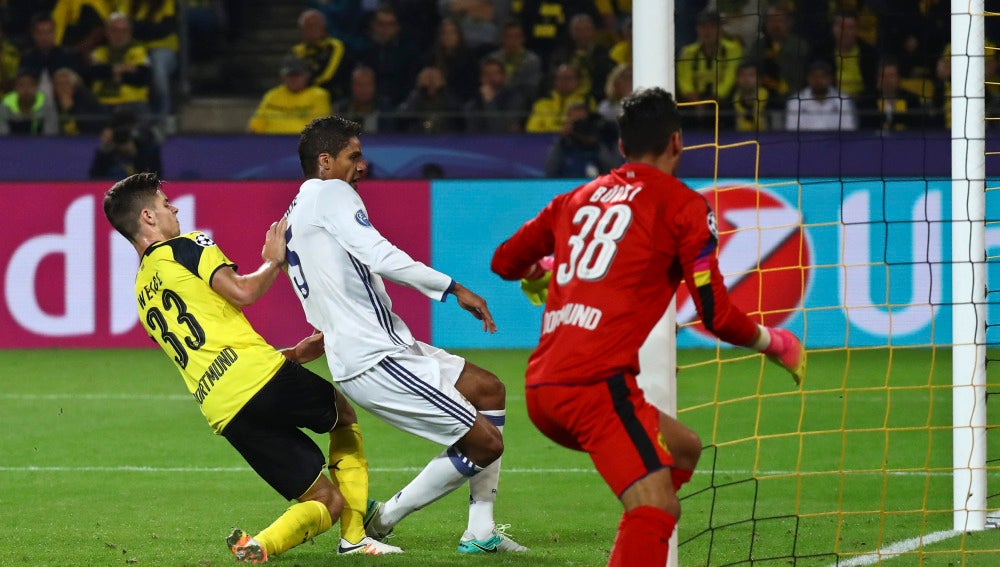 Varane aprovecha un disparo de Benzema al palo para hacer el 1-2