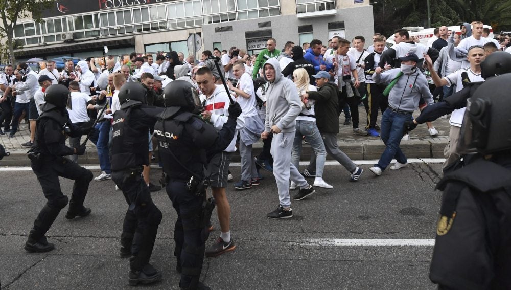 Agentes de la Policía Nacional han detenido a trece hinchas del Legia de Varsovia por provocar incidentes antes y después del duelo ante el Real Madrid en el Bernabéu. En los enfrentamientos han resultado heridas ocho personas: cinco seguidores del Legia y tres policías -dos nacionales y uno municipal-.