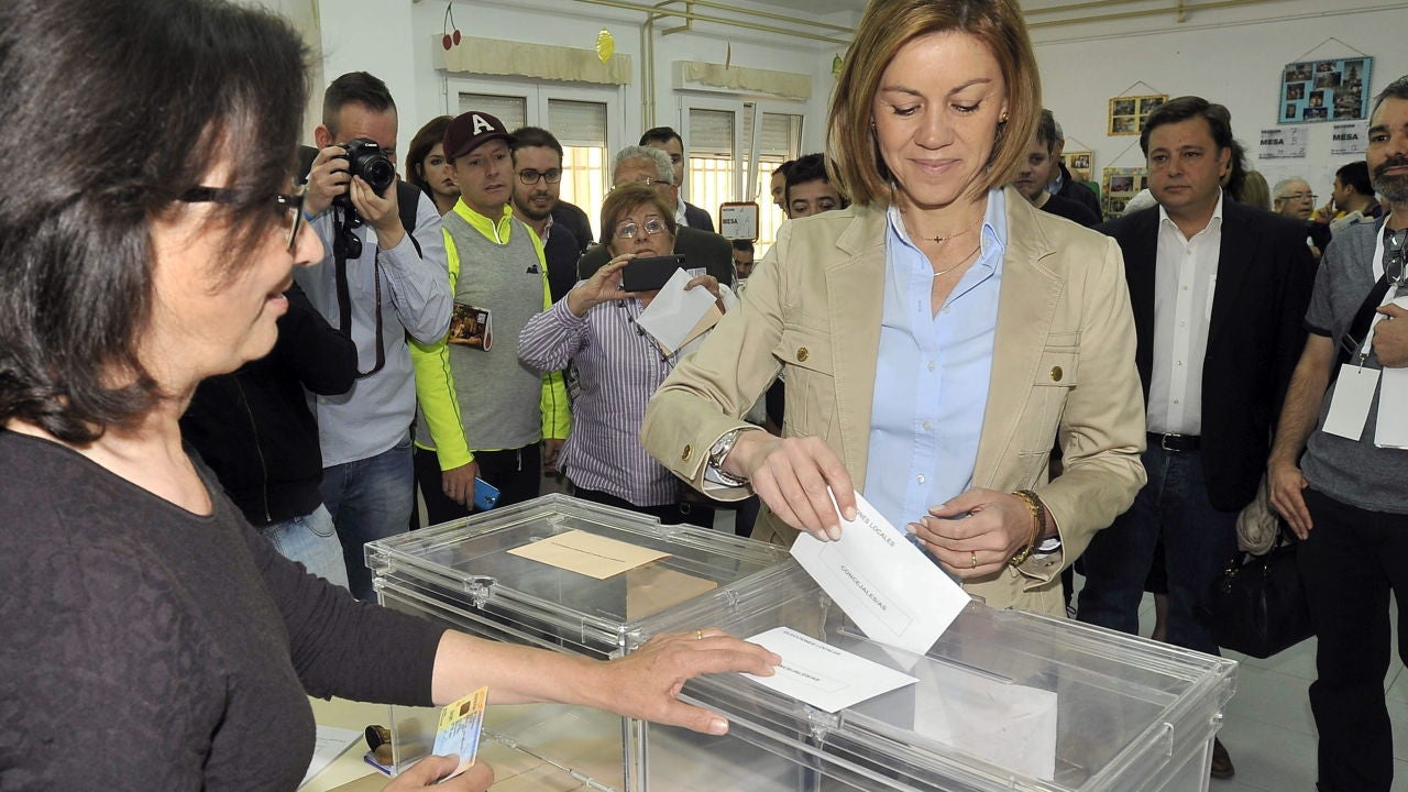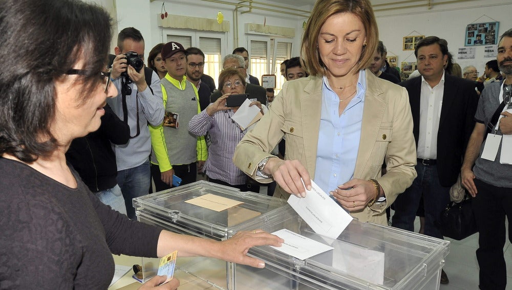 María Dolores de Cospedal, candiata del PP a la Presidencia de Castilla-La Mancha, ha acudido al colegio Parque-Sur de Albacete a las 10:35 a votar junto a sus padres, su marido y su hijo. Cospedal ha destacado que "lo más importante es participar" en "unos procesos muy importantes, para elegir a los alcaldes y presidentes de las comunidades".