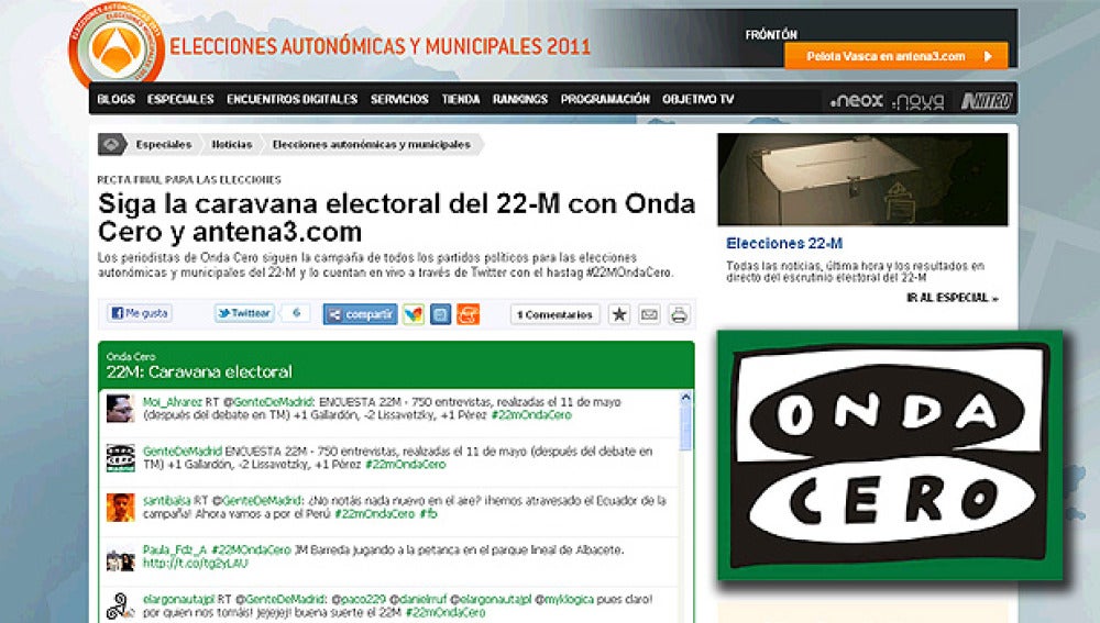 Lo más cercano a la campaña que se discute en Twitter tiene poco de político: la presencia del cantante David Civera como "telonero" de Mariano Rajoy en el mitin central del PP en Zaragoza, uno de los temas del momento en esta red social. Con mucha guasa, los tuiteros han convertido a Civera en uno de los temas del momento en España, sólo detrás de los mensajes sobre la manifestación convocada para mañana en ciudades de toda España por la plataforma "Democracia real ya".