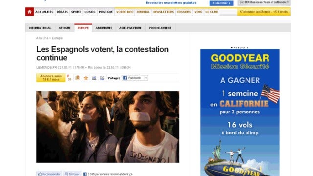 En Francia, 'Le Monde' titula: 'Los españoles votan, la manifestación continúa' y destaca el movimiento del 15-M por encima de los resultados electorales. El rotativo galo describe al movimiento de Sol como 'una huelga de rebelión social inédita contra el paro y la crisis secundada por el país'. Por su parte, 'Le Figaro' califica de "dura" la derrota electoral del PSOE, que personifica en Zapatero.