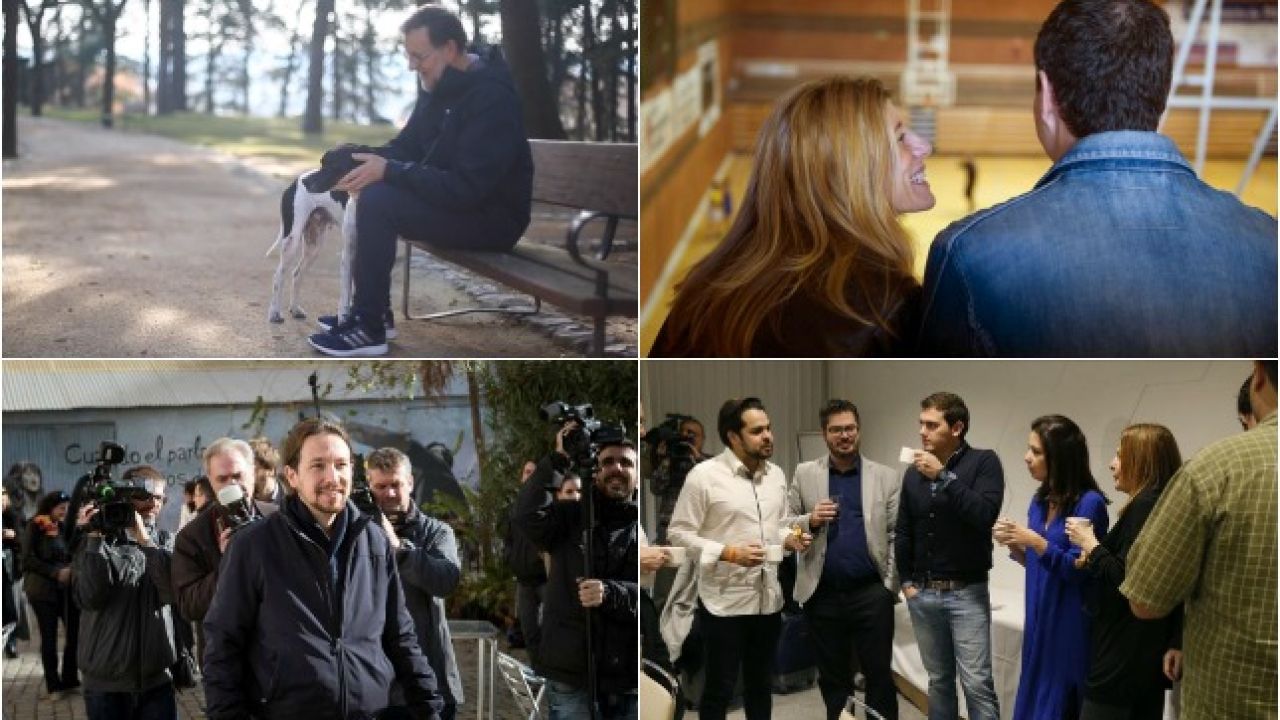 Mariano Rajoy no saldrá de La Moncloa y disfrutará de una comida familiar acompañado de su mujer, sus dos hijos y sus hermanos. Pedro Sánchez también pasará el día en familia, ayudará a sus hijas a montar el árbol de Navidad y posiblemente vaya al cine, igual que Pablo Iglesias, que pasará la jornada de reflexión junto a compañeros de partido. Albert Rivera acudirá a Barcelona para pasar el día con su hija, a quien no ve desde hace 15 días, y su familia. Alberto Garzón viajará a Málaga para disfrutar la jornada con familia y amigos y Andrés Herzog se rodeará de los suyos en Madrid.