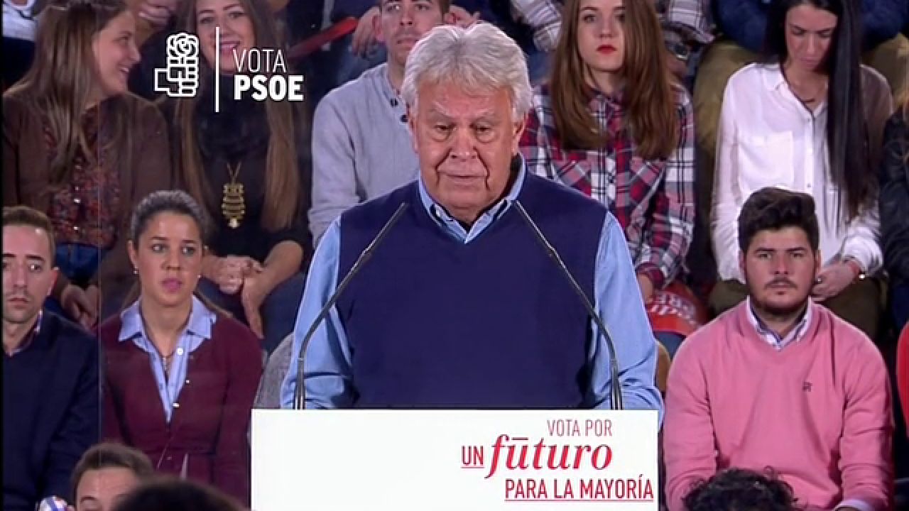 González ha lamentado que los votantes de Podemos no conozcan estas actuaciones que dan respaldo a un gobierno que "ha arruinado a un país que es imposible de arruinar porque no puede ser más rico". "Por si acaso se contagian, si no de mí, del papa Francisco, quiero la libertad de los presos políticos para Navidad. En su casa para Navidad", ha exigido el exlíder del PSOE.