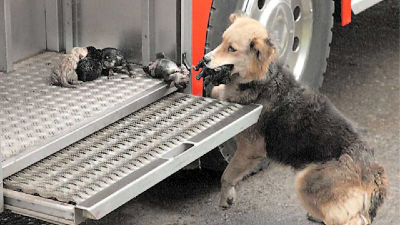 Amanda, la perrita que salvó a sus cachorros de un incendio