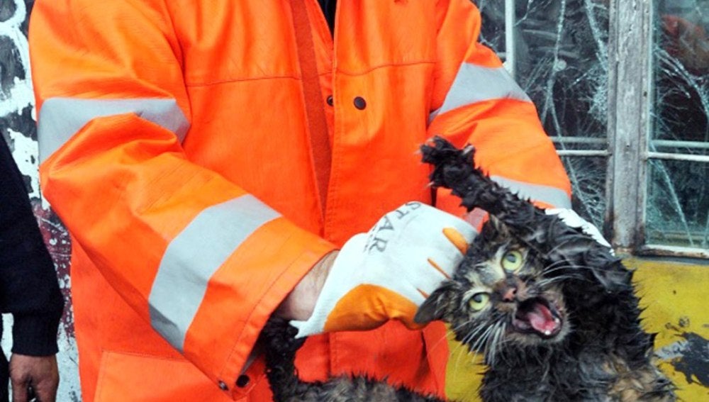 El equipo de emergencias sacó al gato en una operación de rescate de dos horas de duración. Las fotos tomadas durante el rescate del gato, que ahora se encuentra en un refugio para animales, han dado lugar a muchos 'memes' para el recuerdo: