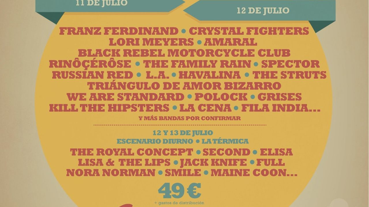 El viernes 11 estará encabezado por los escoceses Franz Ferdinand, Lori Meyers y el dance rock de los franceses Rinôçérôse, mientras que el sábado 12 será el turno de los londinenses Crystal Fighters, Amaral y el rock oscuro de Black Rebel Motorcycle Club. Además, también habrá conciertos diurnos en el centro cultural La Térmica los días 12 y 13 de julio. El cartel también incluirá a la banda ganadora del concurso que se puso en marcha hace unas semanas.