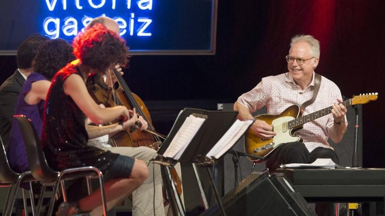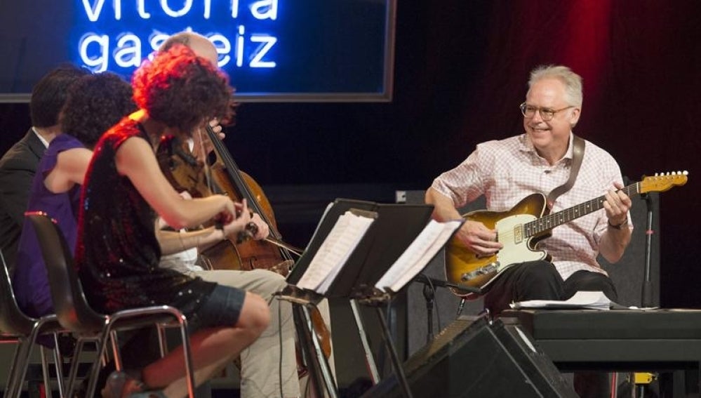 El segundo concierto del Festival de Jazz de Vitoria lo ha protagonizado Bill Frisell con su sonido norteamericano. Un cuarteto de cuerda al que se suman guitarra y batería que ha destilado blues, rock and roll y pop. Frisell ha llevado al polideportivo de Mendizorroza al cuarteto de cuerda 858.