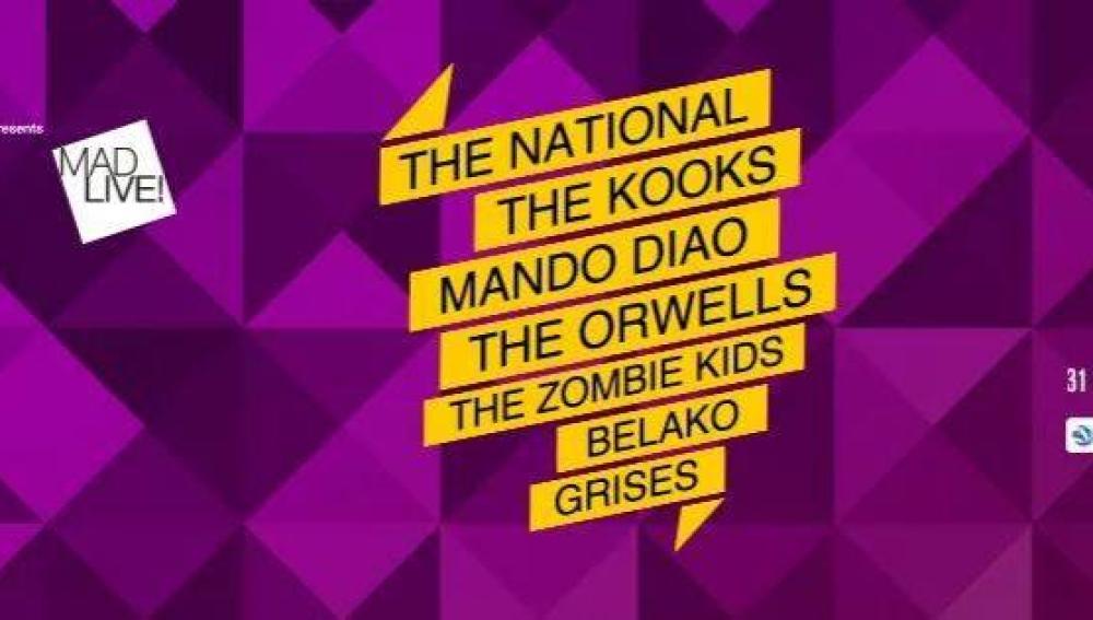 El 31 de octubre se celebrará en Madrid el festival 'MAD Live!', que se celebrará en el Barclaycard Arena de Madrid -antiguo Palacio de los Deportes de la Comunidad de Madrid- y que tiene como principales nombres de su cartel: The National, Mando Diao y The Kooks.