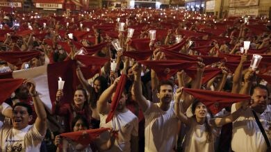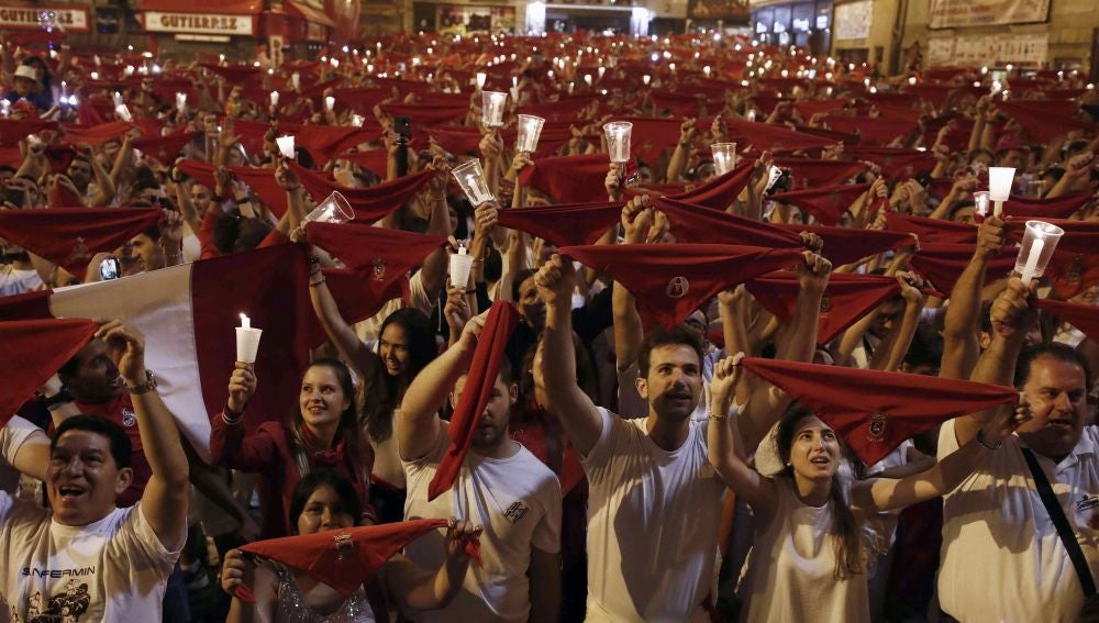 Miles de personas despiden las fiestas de San Fermín con velas encendidas y entonando el tradicional 'Pobre de mí'