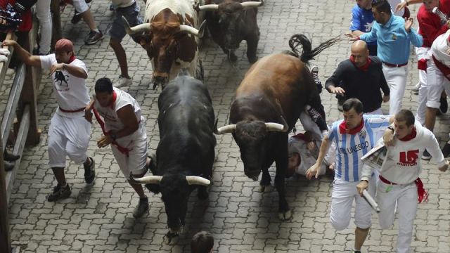Los toros extremeños de la ganadería El Tajo y la Reina, propiedad del matador de toros Joselito han debutado en Sanfermines protagonizando un encierro rápido, limpio y bonito. En apenas dos minutos y diez segundos han completado la carrera. Un corredor ha sufrido dos cornadas ya en la plaza de toros.