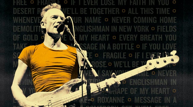 El público de Starlite podrá escuchar éxitos como “Englishman In New York”, “Fields Of Gold”, “Shape Of My Heart”, “Every Breath You Take”, “Roxanne”, “Message In A Bottle” y muchos más, junto a un Sting eléctrico y lleno de rock. Será una oportunidad única de presenciar el concierto de uno de los solistas más distinguidos en el mundo, en Starlite 2019.