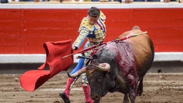 David Mora, de rosa y oro: cuatro pinchazos y estocada trasera desprendida (silencio tras aviso); pinchazo y estocada tendida (ovación tras aviso).