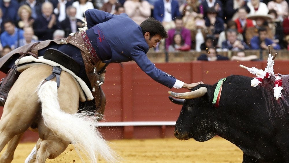 Orejas para Galán y Ventura en un discreto festejo de rejones en Sevilla