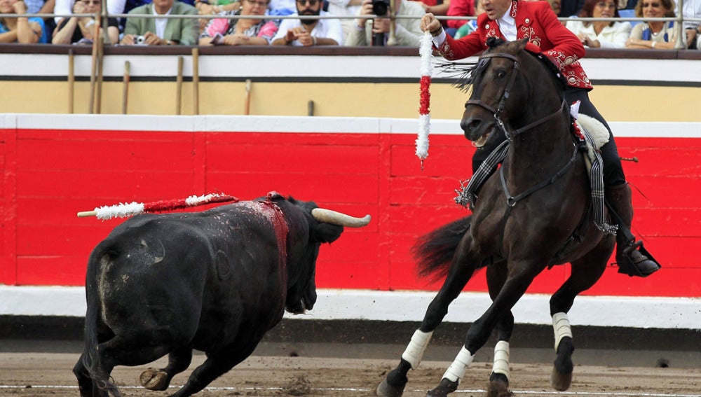 El caballero de Estella le ha hecho un toreo muy puro y templado al primero toro de Bohórquez, en una faena casi redonda de no ser por sus fallos con el rejón de muerte.
