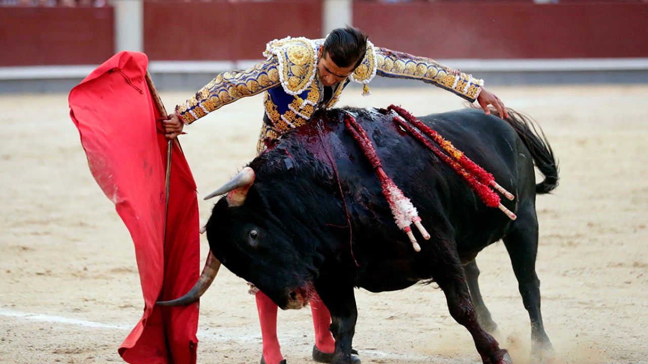 El diestro mexicano Joselito Adame acabó cortando una oreja del último toro de la corrida de la feria de San Isidro después de que sorprendiera a todos tirándose a matar sin muleta, con tanto riesgo como éxito, en una escena que logró un gran impacto en los tendidos