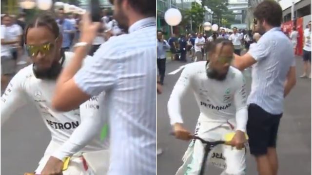 Lewis Hamilton se dirigía al paddock cuando chocó con un aficionado tirándole el móvil al suelo. El piloto británico quiso disculparse después, y lo hizo de una forma bastante original.