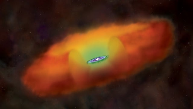 Yoshida y su compañero de investigación de la Sociedad de la Promoción de la Ciencia de Japón (JSPS, por sus siglas en inglés), Shingo Hirano, actualmente en la Universidad de Texas en Austin, identificaron un prometedor proceso físico a través del cual un enorme agujero negro podría formarse lo suficientemente rápido. La clave era incorporar el efecto de los movimientos supersónicos del gas con respecto a la materia oscura. Las simulaciones de las supercomputadoras mostraron que un enorme grupo de materia oscura se había formado cuando el universo tenía 100 millones de años. Las corrientes de gas supersónicas generadas por el Big Bang fueron capturadas por la materia oscura para formar una densa y turbulenta nube de gas. En el interior, un protoestrella comenzó a formarse, y debido a que el gas circundante proporcionó más que suficiente material para alimentarse, la estrella fue capaz de crecer muy grande en un corto periodo de tiempo sin liberar mucha radiación.