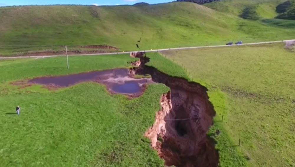 La comunidad científica ha puesto el foco en la Bahía de Plenty, en Nueva Zelanda, desde que el pasado lunes surgiera una gigantesca grieta en la tierra, probablemente fruto de las fuertes lluvias en la zona. Según medios locales, la grieta tiene unas medidas de 200 metros de longitud y entre unos 20 y 30 metros de ancho.