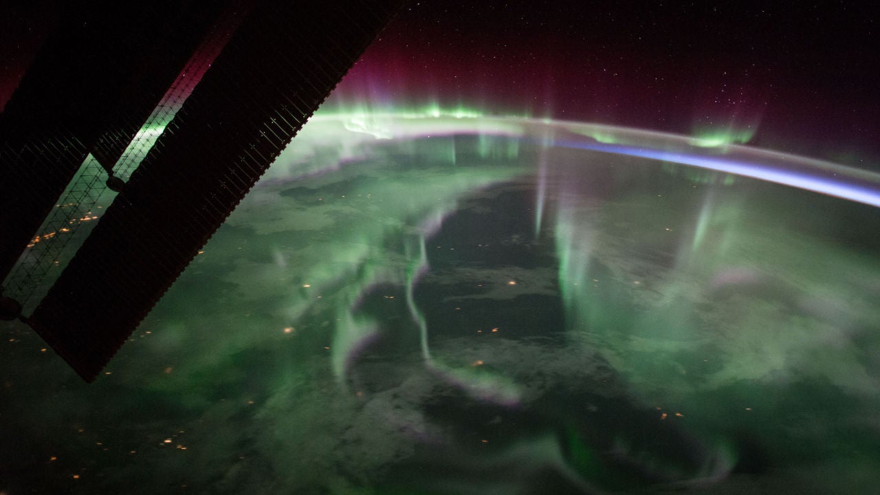 Un astronauta de la Expedición 53 en la Estación Espacial Internacional (ISS, por sus siglas en inglés) tomó el 15 de septiembre esta espectacular imagen de la aurora boreal sobre territorio canadiense. La visión tuvo lugar cerca del punto más alto de la trayectoria del complejo orbital en torno a la Tierra. Las pantallas solares principales de la Estación son vistas a la izquierda de la imagen.
