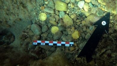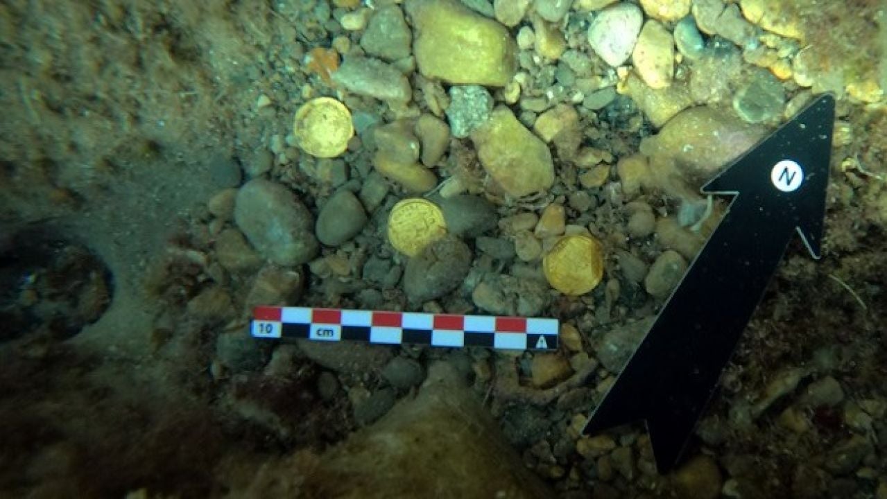 Dos aficionados al buceo en apnea se encontraron con un botín de 53 monedas de oro de época romana en el fondo del mar de la isla del Portitxol de Xàbia, en Alicante. Los investigadores las han datado entre finales del siglo IV o principios del V.