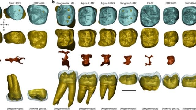 "En el pasado, hubo repetidas controversias sobre el misterioso homínido Meganthropus, pero no hubo pruebas confirmadas de su existencia", dice Kullmer. Los nuevos datos ahora revelan que los dientes difieren claramente tanto de los dientes del Homo erectus como de los orangutanes en cuanto a la distribución del grosor del esmalte y la superficie y posición de las cúspides de la dentina en el interior de las coronas dentales.