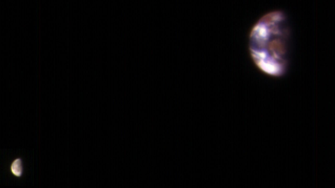 La NASA ha difundido esta imagen de la Tierra y la Luna vistas desde Marte. Esta foto combina la mejor imagen de la Tierra y la Luna de un conjunto de ocho imágenes tomadas el 20 de noviembre de 2016 por la cámara de alta resolución de la NASA en la órbita reconocida de Marte.