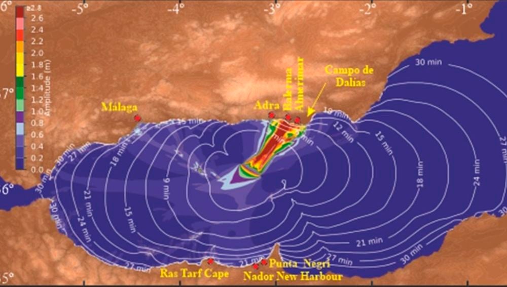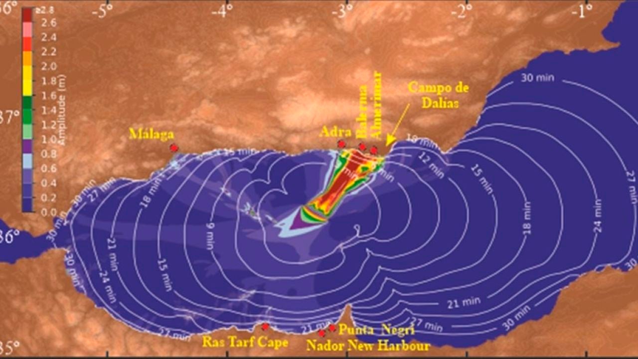 Los investigadores calcularon el comportamiento de las masas de agua del Mar de Alborán en caso de un nuevo episodio sísmico en la falla. La simulación indica que las olas de tsunami se propagarían en dos ramales principales y que inundarían sectores densamente poblados en la costa sur de España y del norte de Marruecos con olas de hasta seis metros de altura.