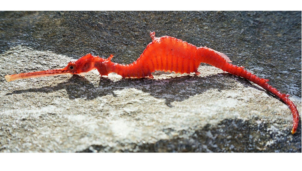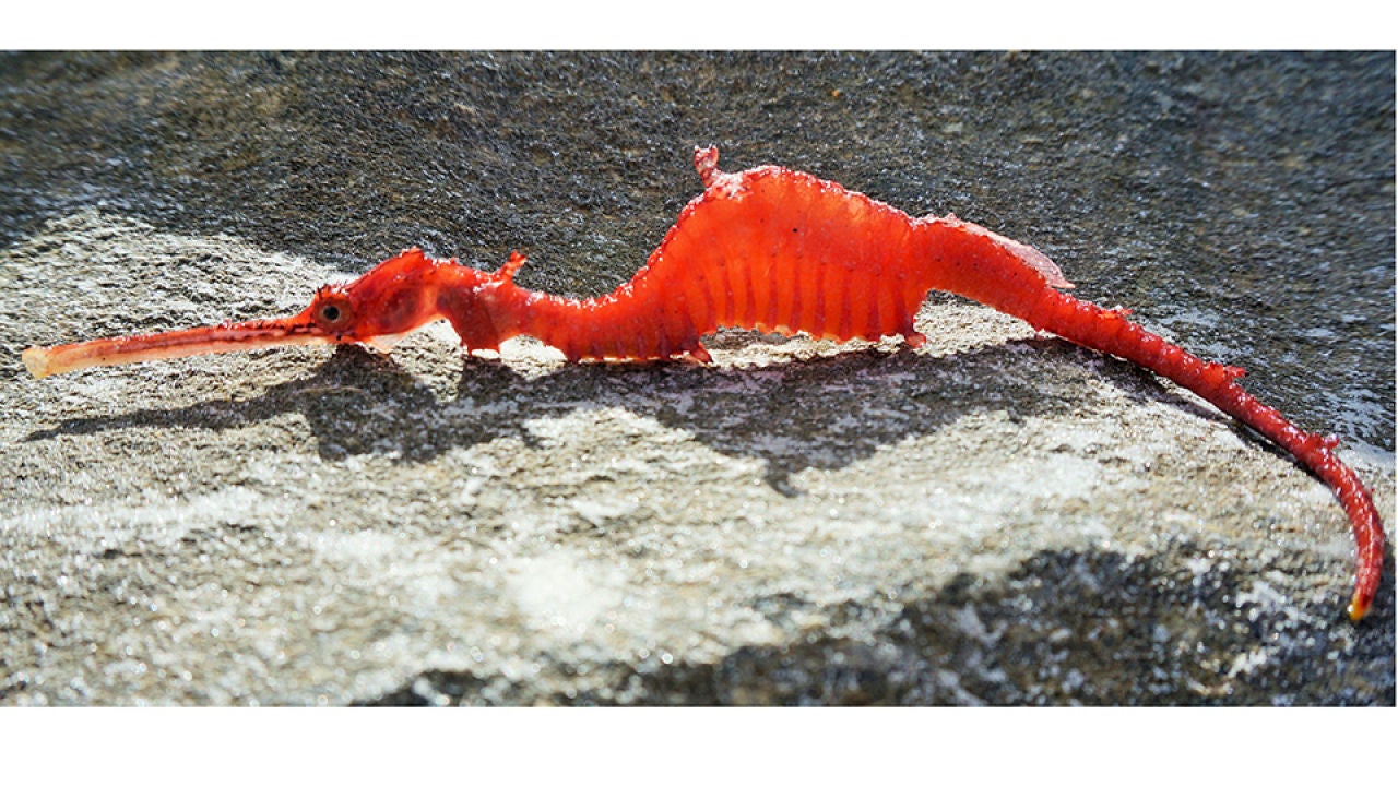 Un grupo de investigadores ha conseguido captar imágenes del dragón de mar rubí, una especie descubierta por primera vez en 2015. Con esta grabación han descubierto que esta especie carece de apéndices en forma de hoja y constatan el color rojo intenso de la especie y las características de su hábitat.