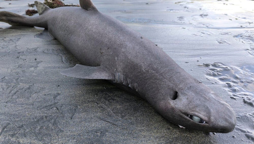 No es habitual encontrar un ejemplar de tiburón foca en la orilla ya que son animales que nadan en las profundidades oceánicas.