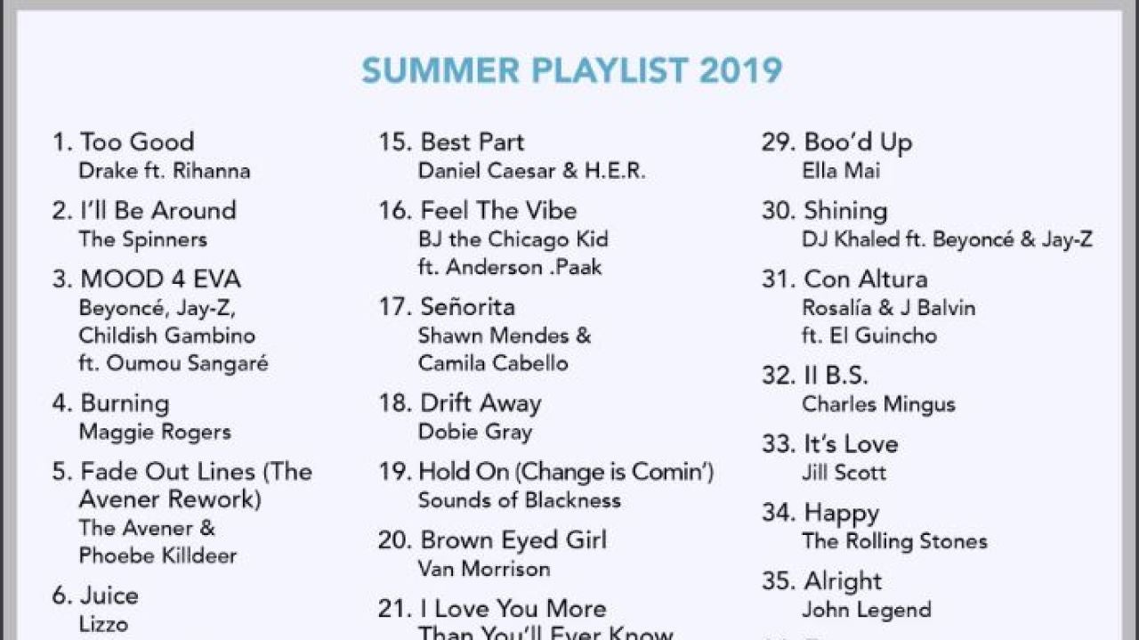 Entre otros temas populares del verano, como 'Juice', de Lizzo, u 'Old Town Road (Remix)' de Lil Nas X; Obama intercala algunos clásicos de sus artistas favoritos, como Stevie Wonder, Frank Sinatra, Ella Fitzgerald, o Steely Dan, junto a incursiones en el rock más reciente de la mano de The Black Keys o Sharon Van Etten.