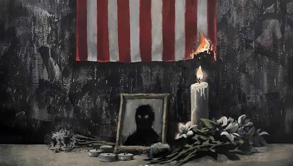 El artista inglés Banksy ha colgado un mensaje en su cuenta de Instagram en el que, junto con la imagen de unas flores y unas velas que empiezan a prender la bandera de EEUU, denuncia que "el sistema está fallando a la gente de color".