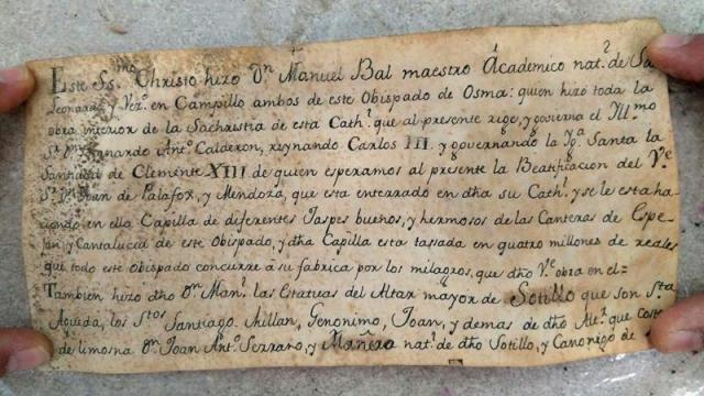 Los restauradores de una talla del siglo XVIII localizada en una iglesia del municipio burgalés de Sotillo de la Ribera han descubierto, ocultos en el interior de la obra, una serie de documentos con información económica, religiosa, política y cultural de la época.