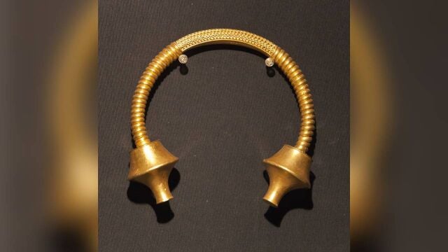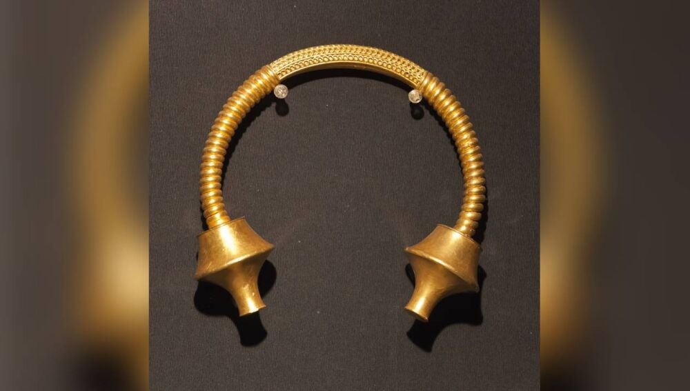 El primero, un torques de oro macizo de casi 400 gramos, apareció en mayo y, como suele suceder en estos casos, ocurrió por casualidad. El abuelo de la familia manejaba el tractor mientras el resto echaba una mano con la tarea. En la tierra removida apareció entonces una pieza metálica a la que, en un primer momento, no dieron importancia. Tras limpiarla con agua constataron que se trataba de un tesoro.