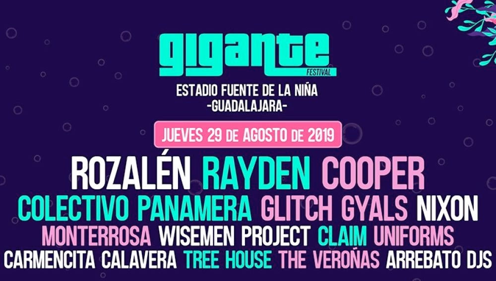 El festival Gigante 2019 celebra su sexta edición del 29 al 31 de agosto con cerca de 50 artistas. La Pista de Atletismo Fuente de La Niña de Guadalajara acogerá los cinco escenarios, una zona de camping, zona VIP y zona infantil.