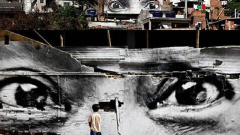 En 2008 JR puso su mirada, nunca mejor dicho, en las miserables favelas que se apiñan en Río de Janeiro. Pero el Primer Mundo también ha sido testigo de sus arte comprometido y efímero. Las riberas del Sena en París sustentaron durante unos días su alegato a favor de la mujer africana antes de que las brigadas de limpieza hicieran su trabajo.