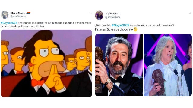 También han aparecido memes sobre aquellas personas que ven la gala, pero no han visto ninguna de las películas, documentales o cortos nominados en las categorías. "Yo viendo los Goya sin haber visto ninguna de las pelis", escriben algunos usuarios.