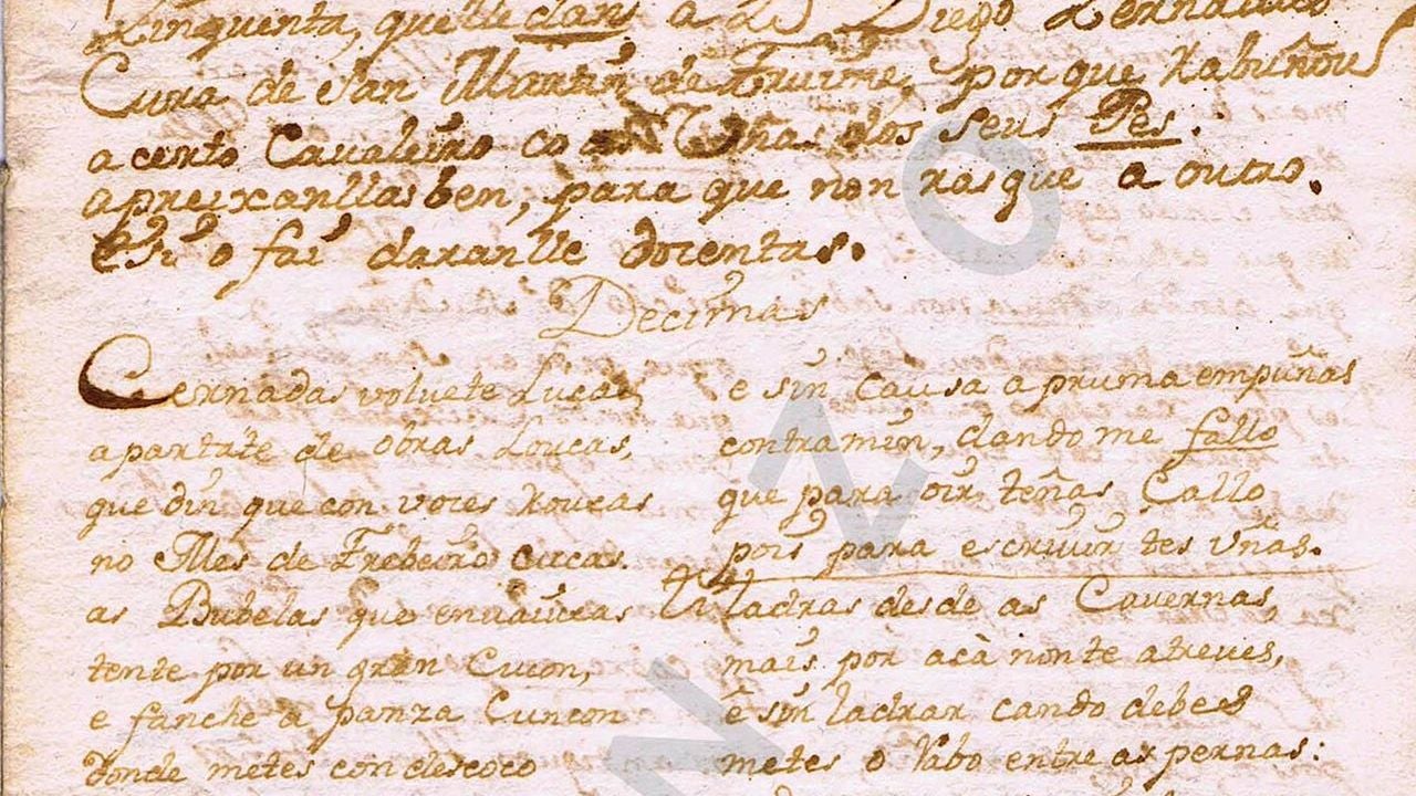 Se trata de una larga carta en verso, en concreto 50 décimas, dirigidas contra don Diego Zernadas, conocido como el Cura de Fruíme, sacerdote y escritor de la Galicia de la Ilustración. El estudio de este manuscrito, a cargo del profesor Fernández Salgado, se ha publicado bajo el título 'Cincuenta décimas contra don Diego Zernadas' por parte de Edicións Laiovento.