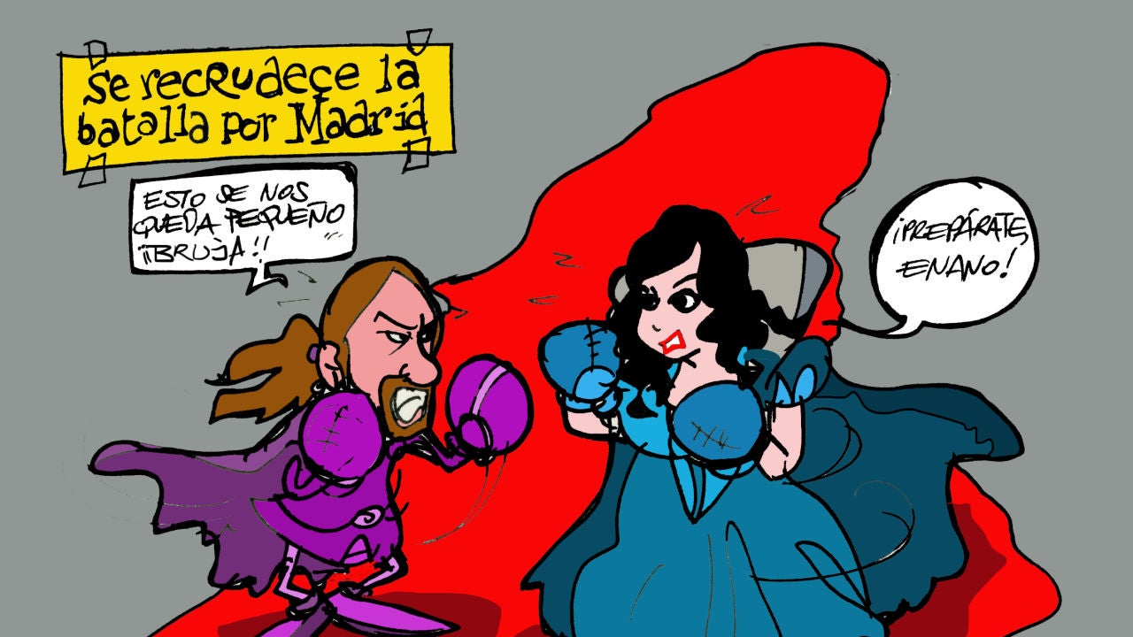 Nuestro ilustrador, Alfredo Boto-Hervás nos trae una semana más una viñeta gráfica en la que muestra que se recrudece la batalla por Madrid. Iglesias y Ayusose baten en duelo en esta cómica viñeta.