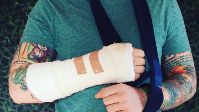 El cantante británico anunció el incidente en su cuenta de Instagram, publicando una foto con el brazo escayolado.