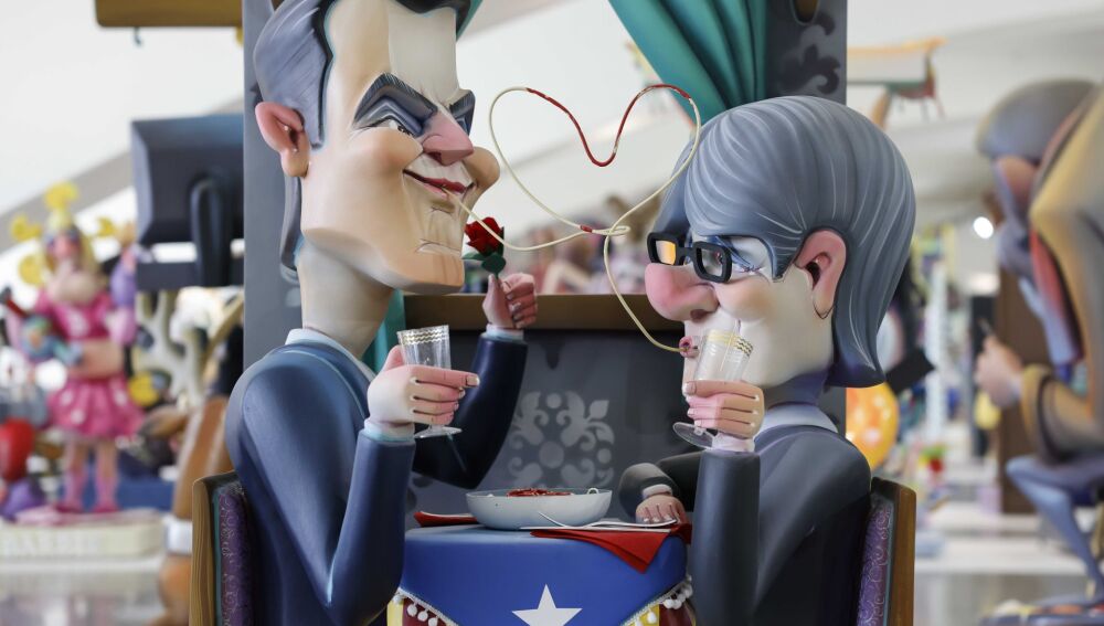 Una crítica que también tiene guiños a la gestión política de la Dana en la Comunidad Valenciana con el expresident de la Generalitat Valenciana, Carlos Mazón, en una de estas figuras se le ve como 'Pinocho' y, de fondo, la periodista Maribel Vilaplana.