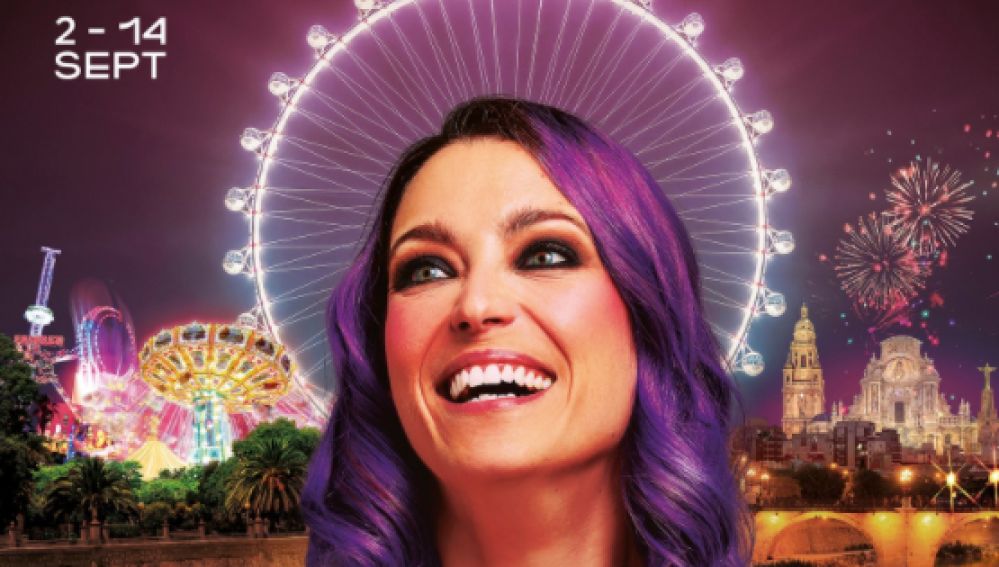 Bajo el lema 'Bendita Feria', varios artistas murcianos como la escritora y humorista Raquel Sastre, el matemático e investigador Santi García, y la ajedrecista Elena Rodríguez, cuya imagen aparece delante de una noria de las fiestas como si de una aureola se tratase.