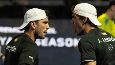 "Pero vuelve caliente, vuelve caliente", le termina diciendo Ale antes de que Lebrón fuera rápido al servicio. La explicación a todo esto llegaría segundos después con las palabras de Galán hacia su entrenador, que estaba delante presenciando todo: "El cabrón siempre que va al baño empezamos break abajo. Siempre... no sé que hace pero siempre", concluye el madrileño. La historia terminó en ambos abrazándose tras una espectacular volea del propio Lebrón en el punto de partido ante Coello y Tapia. Primer torneo y primer título para el madrileño y el gaditano.