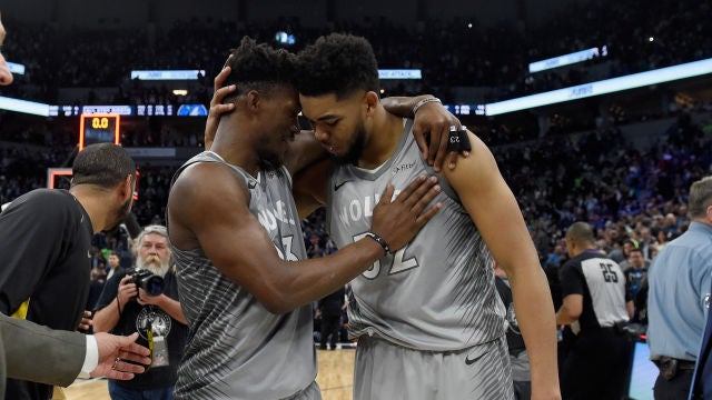 Jimmy Butler anotó 31 puntos y el dominicano estadounidense Karl-Anthony Towns aportó su doble-doble número 68 como líder de la liga en un encuentro en el que los Timberwolves de Minnesota vencieron en el tiempo de prórroga 112-106 a los Nuggets de Denver.