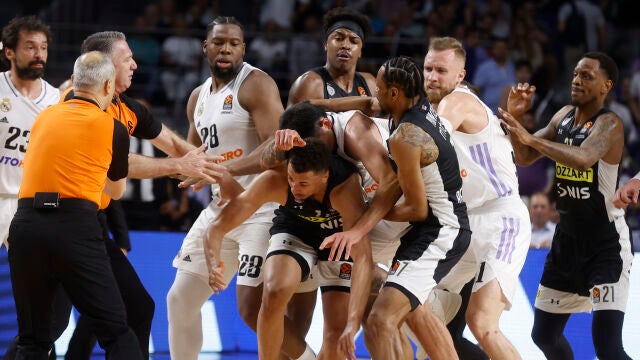 Los jugadores de Real Madrid y Partizan protagonizaron una de las secuencias más lamentables que se recuerdan en el baloncesto europeo: solo 3 jugadores de 24 evitaron la descalificación. Los blancos irán a Belgrado con 0-2 y las peores consecuencias podrían estar al caer.