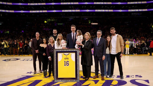 La dinastía más laureada junto a los Boston Celtics honró a un Gasol que formó una alianza para el recuerdo con Kobe Bryant en los anillos de 2009 y 2010. Desde hoy, todo aquel que mire al techo del Crypto.com Arena, el nuevo nombre del Staples Center, verá el 16 de Gasol junto al 8 y el 24 de su 'hermano' Kobe.